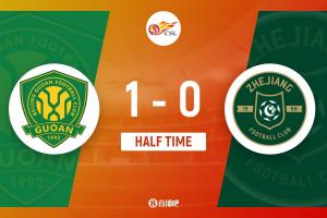 上半场补时3分钟。半场战罢,国安1-0浙江。