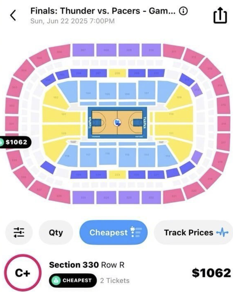 美国媒体赛后第一时间带来了爆料,抢七将会在雷霆队的主场进行,而现在这场比赛的票价是整个雷霆队的队史新高。雷霆队主场的山顶票票价都有1062美元,这还是离最后的场地中央最远的位置,你可想而知,场边的这个贵宾席的票价,那肯定是5位数甚至6位数以上了。