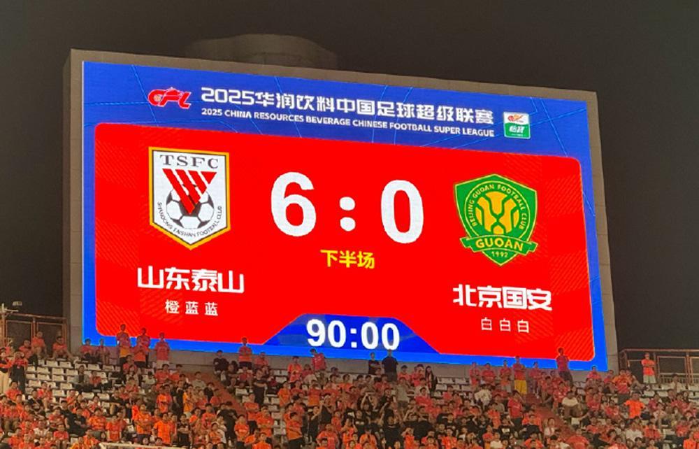 从1-6到6-0,韩鹏挂帅的山东泰山完成了一场队史的史诗级胜利,在主场以6球的分差狂胜北京国安,终于报了上半程5球分差输球的耻辱纪录。这回不光把上次的5分分差补足,而且还多赚了一个净胜球。再看塞蒂恩率领的北京国安一口气送6球,仿佛这次是特意登门道歉还债的——对不起,上次不小心赢了5球,这次多赔1球,权当利息。