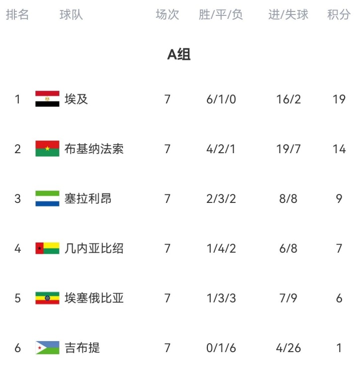 埃及的小组赛还剩最后3轮,下周他们将在客场直接对阵布基纳法索,如果取胜埃及就将锁定小组第一,现在他们距离晋级2026年世界杯正赛仅一步之遥。