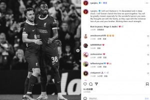 体育资讯7月4日讯 利物浦前锋若塔因车祸去世,年仅28岁。队友赫拉芬贝赫通过社媒送上悼念: